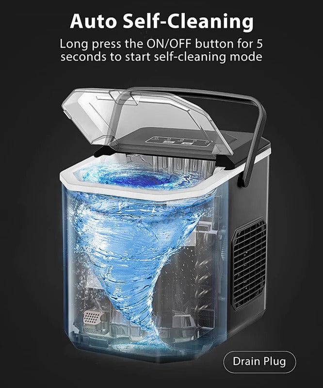Self-Cleaning Bullet Ice: Hold the button 5 seconds for automated cleaning while it produces smooth, non-stick bullet cubes perfect for whiskey or seafood displays.