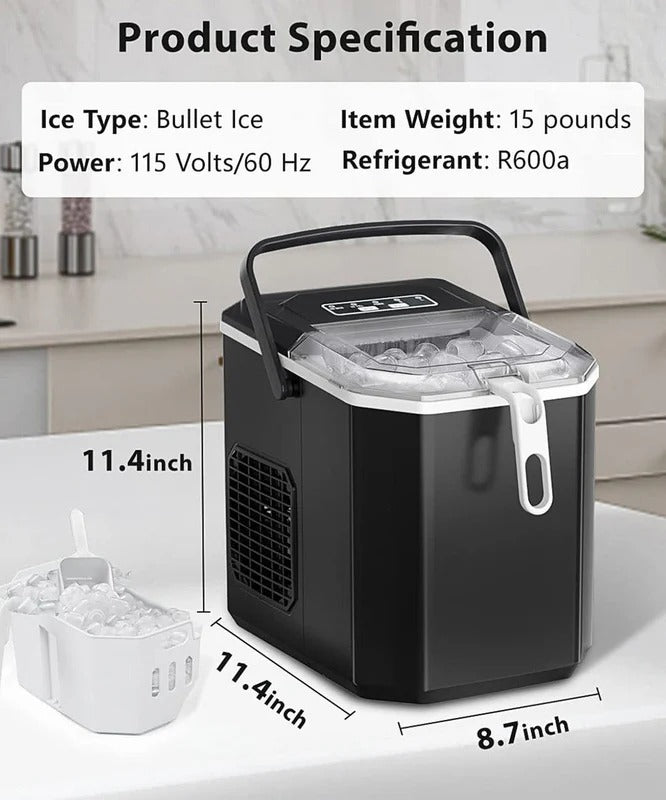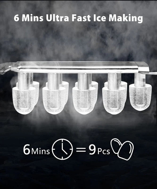 6-Minute Ice Magic: Get 9 cubes in just 6 minutes from a 1.2L tank that churns out 26.5 lbs daily—quiet enough for midnight cocktail sessions yet powerful for surprise parties.