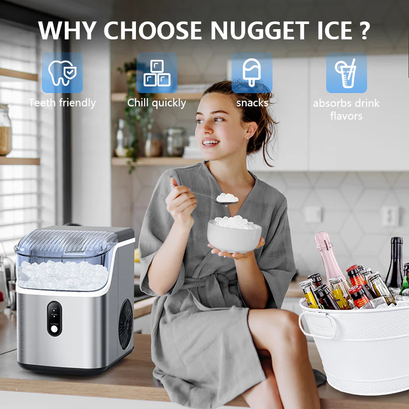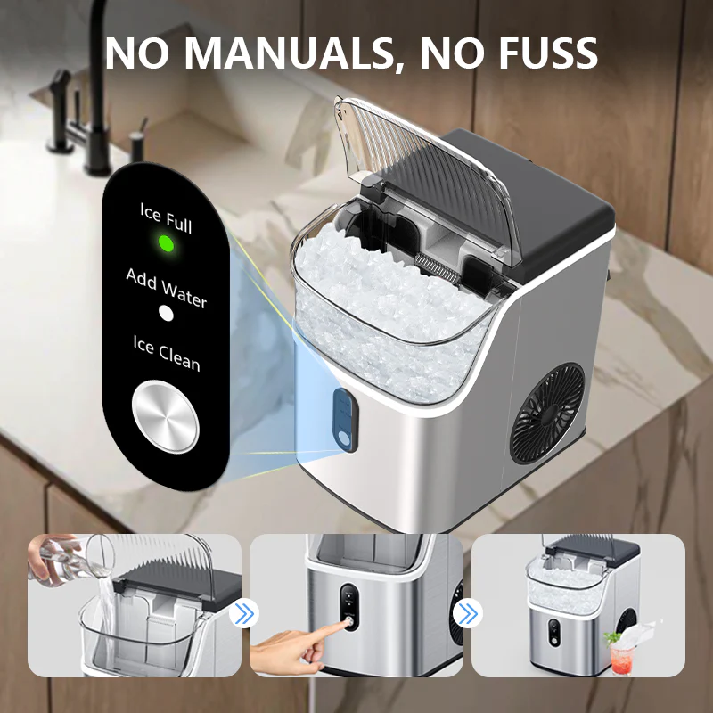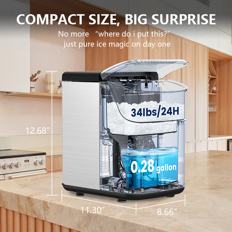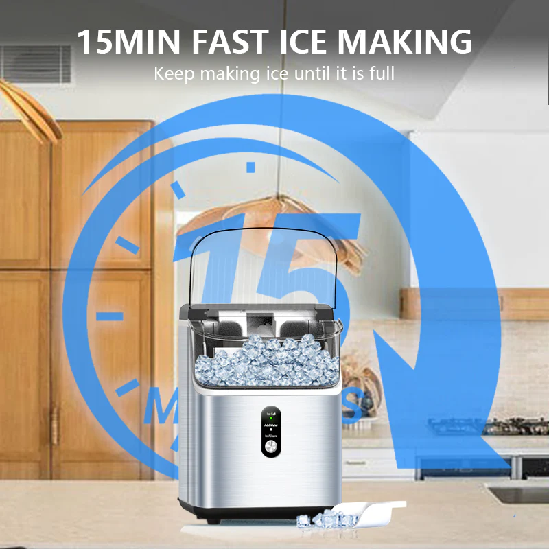 Utilizing rapid-phase-change technology, this unit converts 1.1L water into chewable nugget ice at -12°C within 7 minutes (industry average: 15min), delivering continuous 34-lb/24hr output for uninterrupted party service.