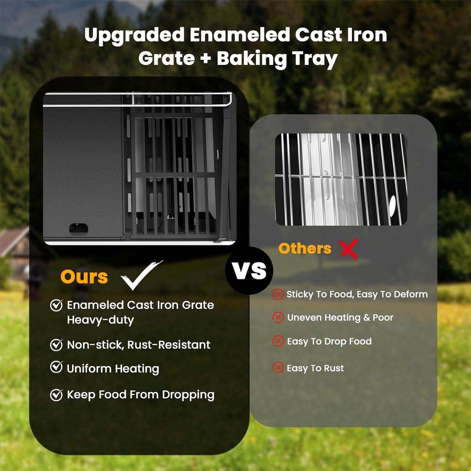 Enhanced Durability: Enameled Cast Iron Grates & Baking Pan: