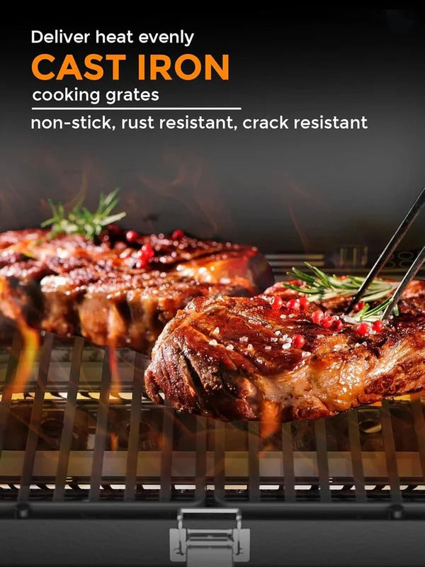 All-Weather Cooking IQ: Built-in thermometer guides beginners to perfect doneness, while heat-proof handles and wind guards ensure stable results even in rain or gusts.
