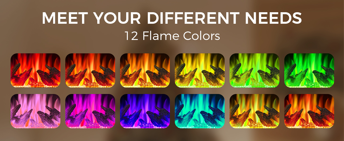 CIE L*a*b 90% Flame Realism 3D holographic projection with refractive crystal/charcoal layers renders 12 flame hues (ΔE<2.0) + 12 ember colors, adjustable across 5 brightness levels (200-800 lux) and 5 flicker speeds (0.2-1.1Hz).