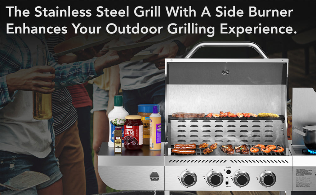 Constructed from premium stainless steel, this heavy-duty grill offers an exceptional grilling experience. The material provides outstanding resistance to high temperatures and corrosion, ensuring remarkable durability that withstands the rigors of outdoor environments over time. It's perfectly suited for family gatherings or barbecues with friends.