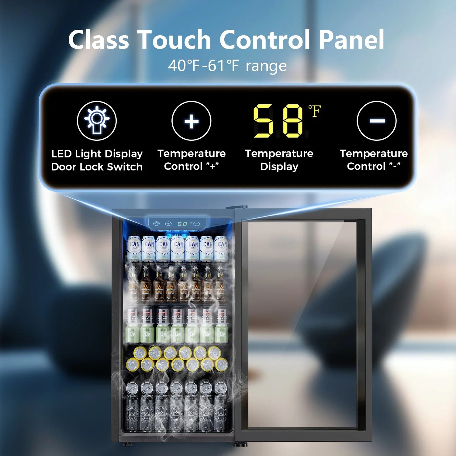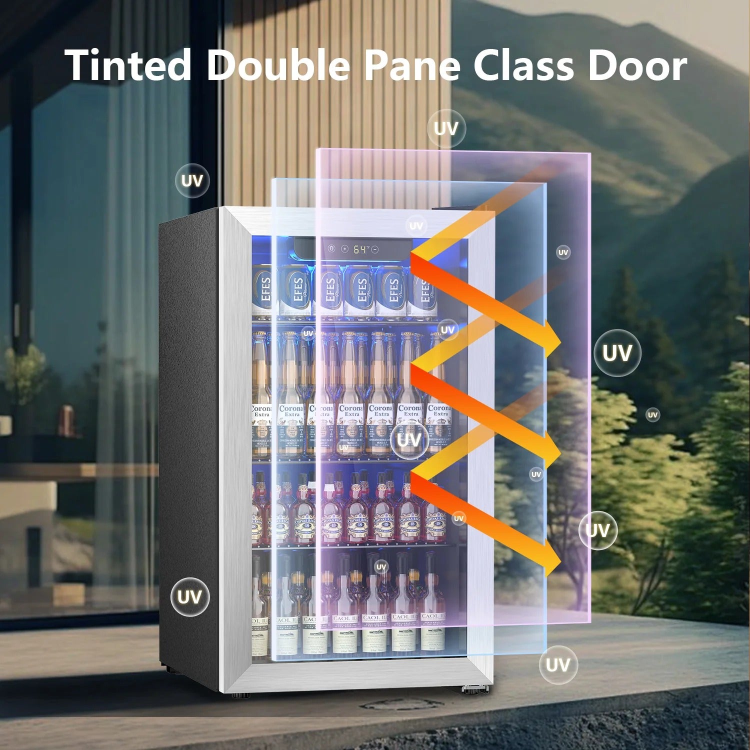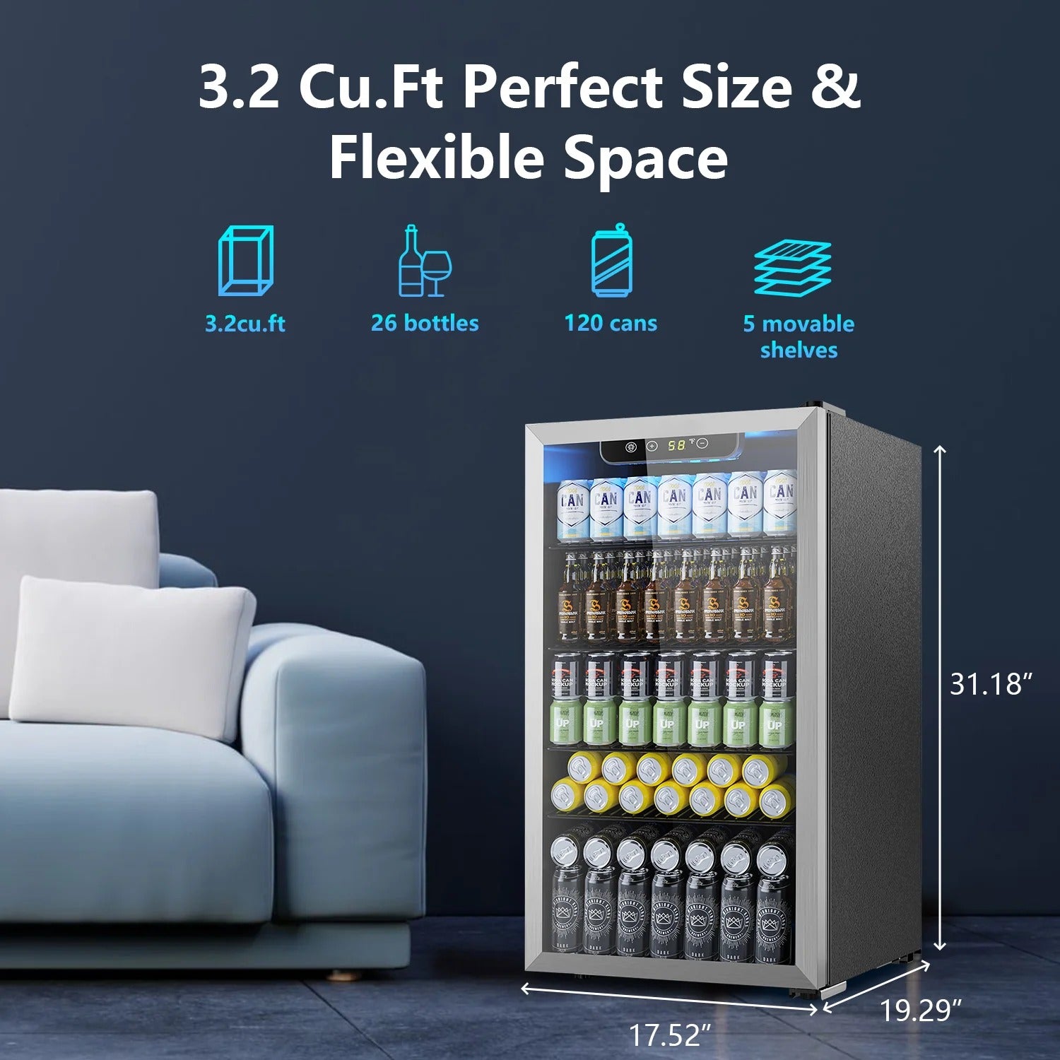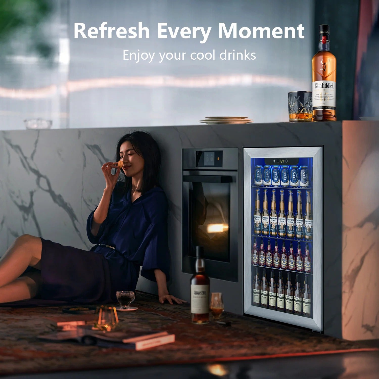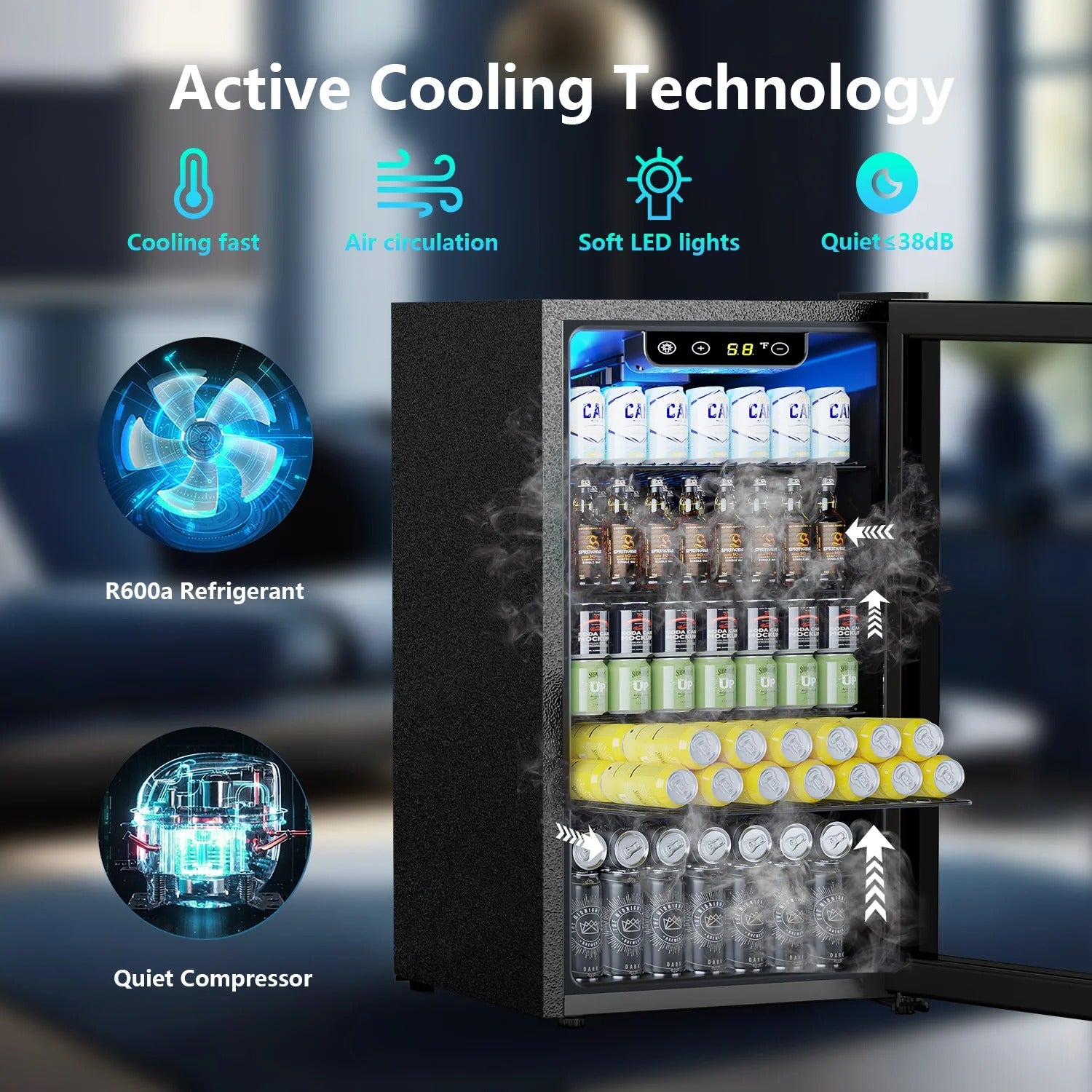 This dual-pane beverage refrigerator organizes up to 130 standard cans through 4 commercial-grade adjustable shelves (22lb capacity each), accommodating tall bottles or 5L mini-kegs for effortless party resupply and daily access.